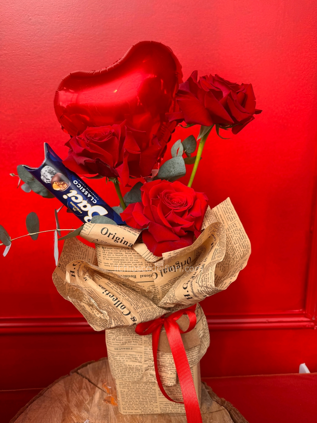 | Composizione tre rose con cioccolattini cod. 124042 | Importo € 20,00 | Num. steli : |
